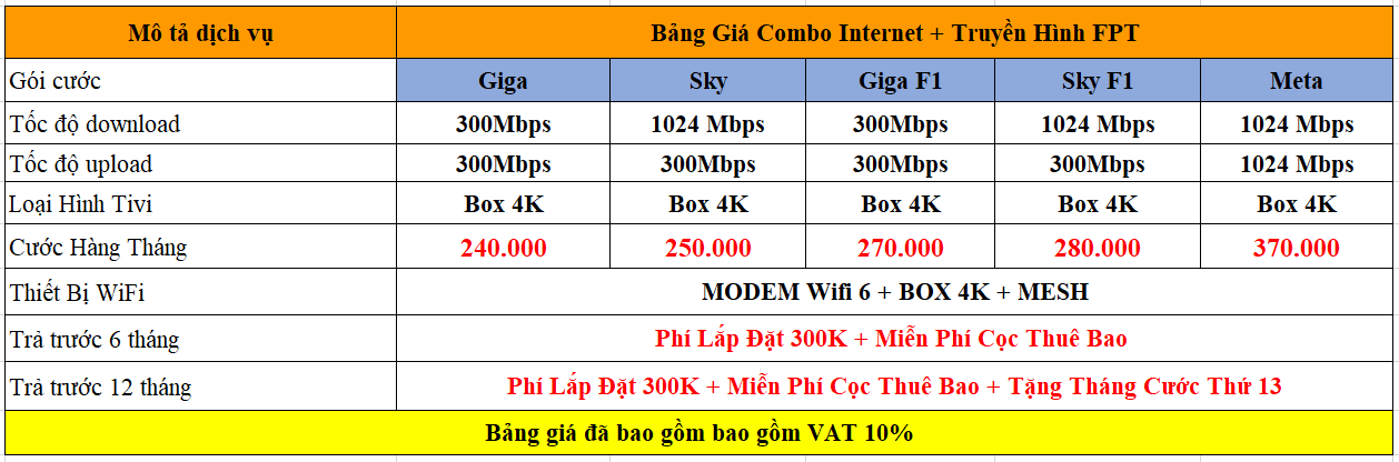• Gói combo cơ bản: Internet + Truyền Hình 4K Ultra HD chỉ từ 230.000đ/Tháng