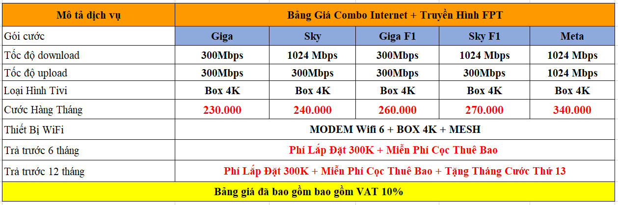 - Gói combo cơ bản: Internet + Truyền Hình 4K Ultra HD chỉ từ 230.000đ/Tháng